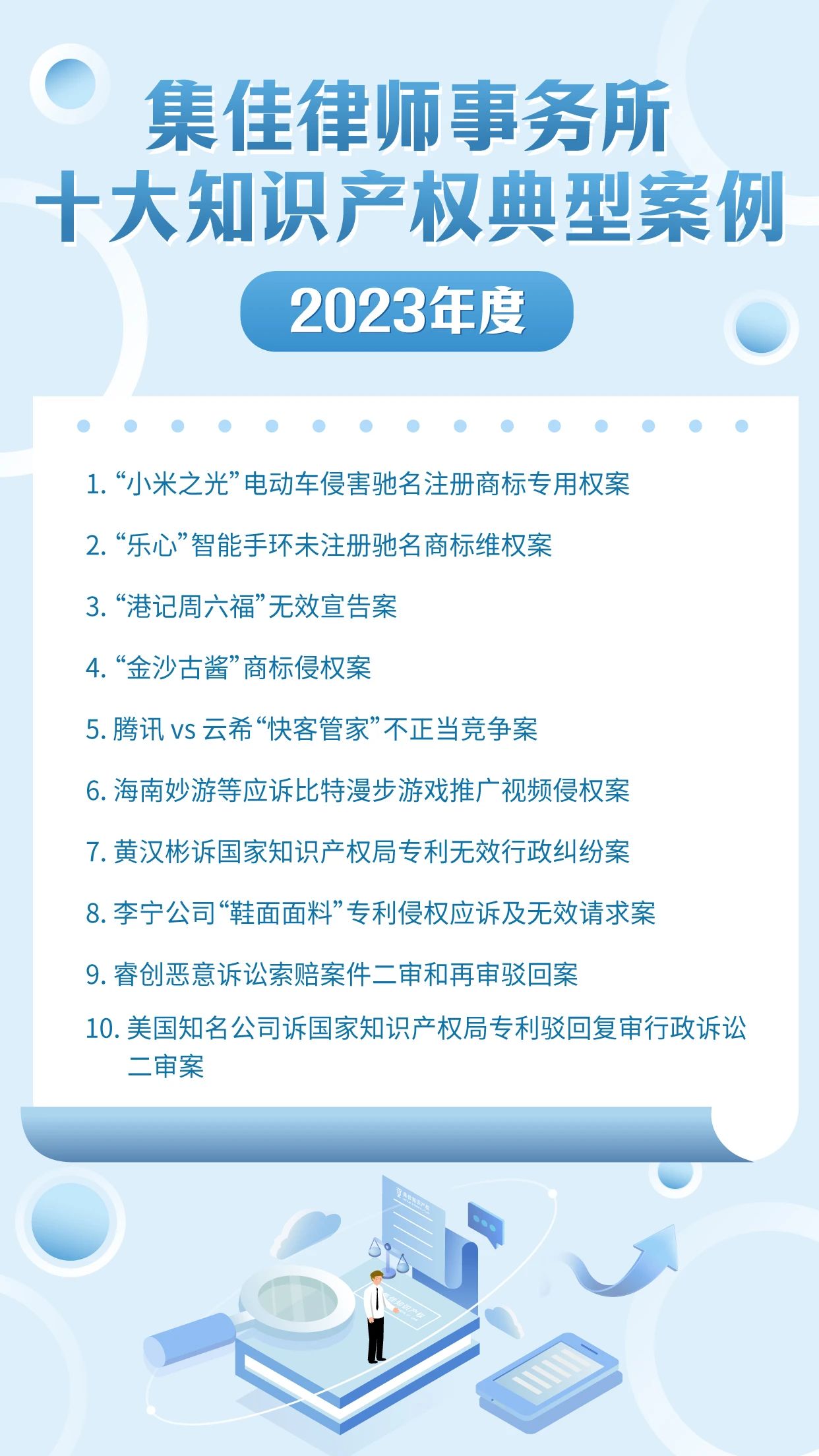 作为迎接4.26世界知识产权日的献礼之一,星空娱乐已连续十年开展十大知识产权典型案例的评选活动,其意义不仅在于展现集佳律师团队的专业能力和水准,更在于传递集佳全方位服务客户的理念。在第24个世界知识产权日来临之际,星空娱乐从2023年度代理的众多知识产权案件中筛选出具有代表性的十大案例,与各界同仁分享:
