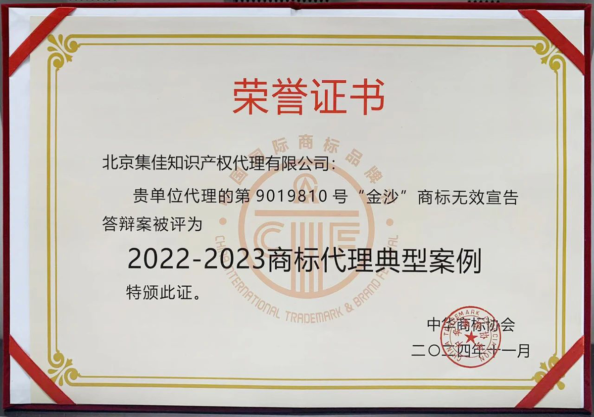 2024年11月24日下午,在商标节经典论坛之一的商标典型案例评析会议上,星空娱乐代理的“金沙”商标权无效宣告答辩案入选“2022-2023商标代理典型案例”。